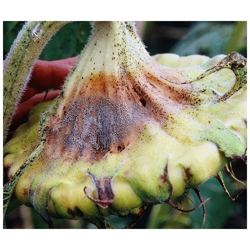 Çiçeklenme sonrası gri kahverengi yumuşak çürüme, gri-gümüş renkli küf tabakası. |