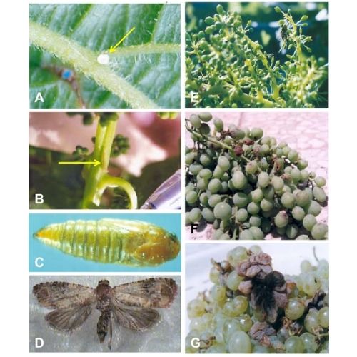 Larvalar (tırtıllar) çiçek, tane ve salkım üzerinde beslenerek doğrudan kalite ve verim kaybına yol açar.
