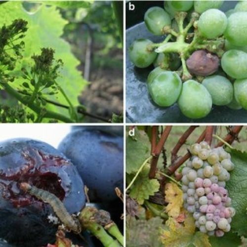 Salkımda delinmiş, kahverengileşmiş taneler,
