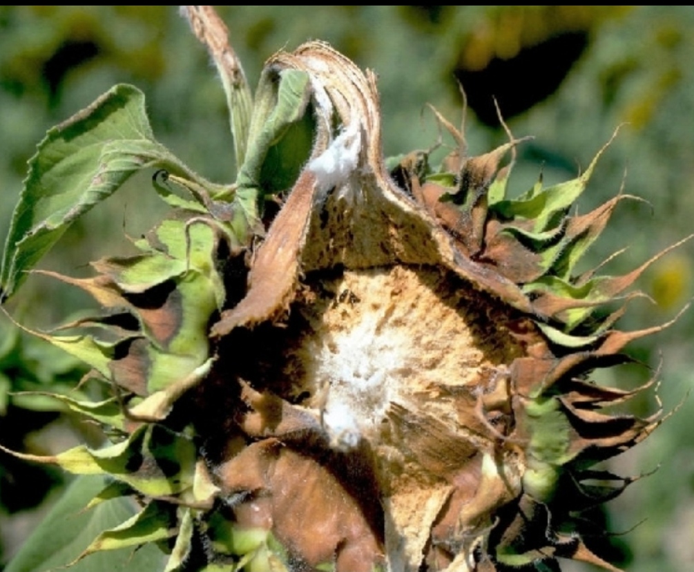 Ayçiçeğinde kökten bulaşmaktadır. Sulu ve nemli koşullarda, %70 e varan verim kayıplarına neden olabilir, Çiçeklenmede yüksek sıcaklık (20 - 30 º C) ve nemli şartlar hastalığın oluşmasında etkilidir. Üç farklı türünün görüldüğü ayçiçeğinde S. Sclerotiorum geniş ve şekilsiz daha büyük (1-5 cm çapında) sclerotlara sahiptir. S. minor küçük, üniform, yuvarlak, 0,5-2 mm çapında siyah sclerot, S. sclerotiorum ise geniş ve şekilsiz daha büyük (1-5 cm çapında) sclerotlara sahiptir. Scleretonia rolfsii ise, açık kahverengiden siyaha değişen, S. minor gibi küçük ve yuvarlak sclerotlara sahip olup, ancak diğerlerinden farklı misellerinde kıskaç şeklinde bağlantılar vardır. Scleretonia minor sadece solgunluk ve kök çürüklüğü, Scleretonia sclerotiorum ise, tüm belirtileri gösterir.