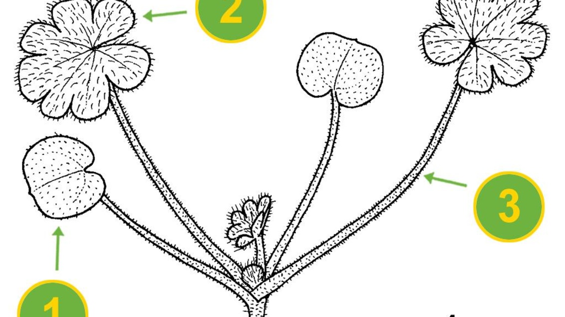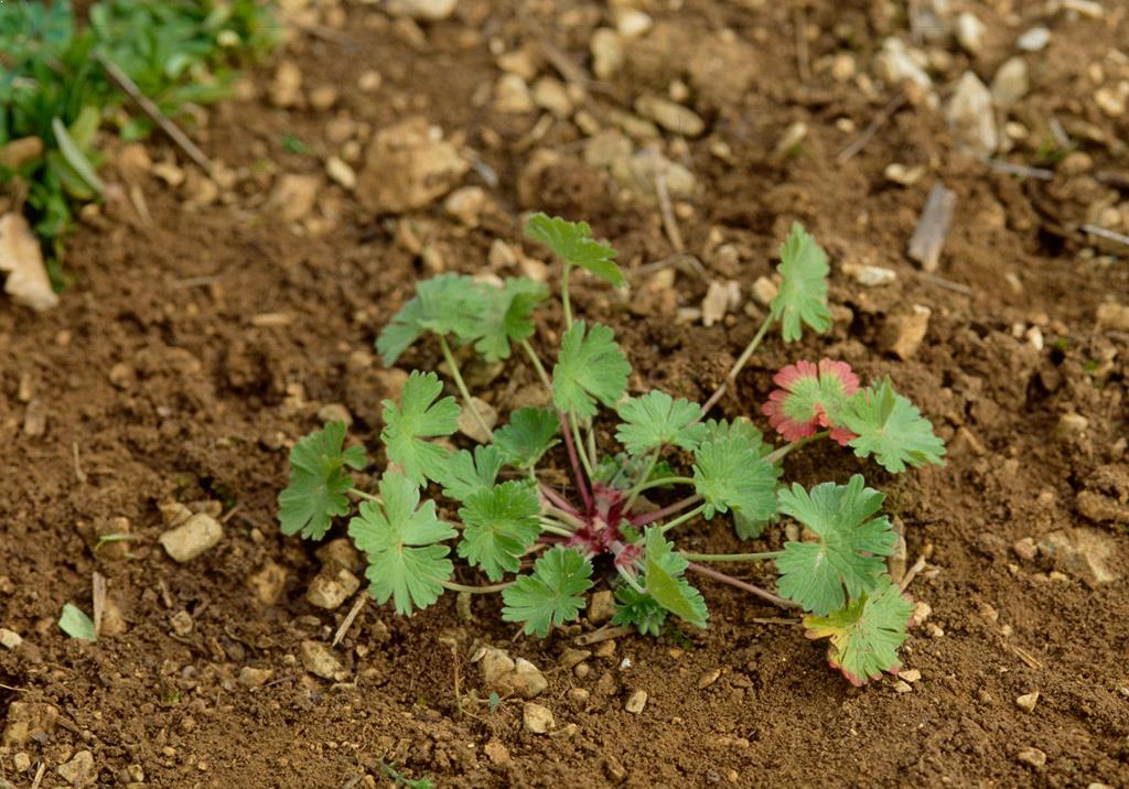 Genç Bitki: Geranium cinsine özgü olarak böbrek şekilli kotiledon yaprakları vardır. Yuvarlak ve elsi bölümlü yaprakları vardır.