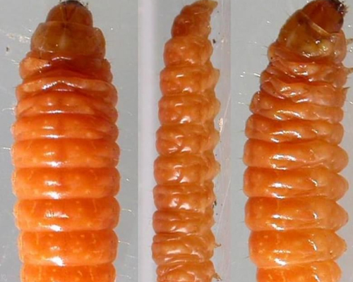 ✓ Kırmızı tomurcuk tırtılı Kanat ucunun iç ve dış köşelerine yakın birer koyu renkli leke vardır. Larva koyu kahverengi-kırmızı olup, baş ve göğüs plakası parlak siyahtır.