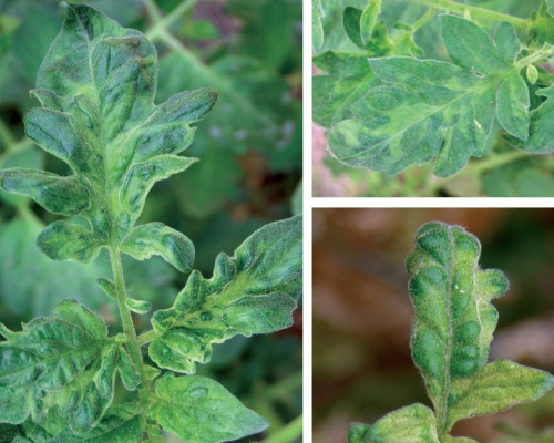 Tomato mosaic virus (Tobacco Mosaic Virus=TomMV) viral bir etmen olup, biber, patlıcan, petunya, ve diğer solanaceous bitkileri etkileyebilir. Virüs mekanik olarak, elle, alet ve giysiler ile kolaylıkla taşınabilir. infekteli bitki kalıntılarında ve tohum üzerinde varlığını koruyabilir.