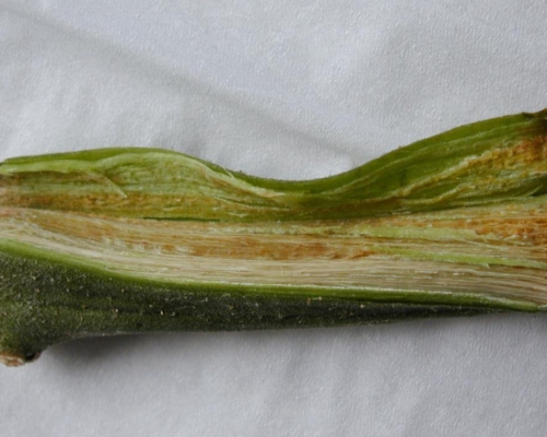 ✓ Solgunluk belirtisi gösteren bitki ortadan ikiye kesildiğinde iletim demetleri boyunca ince sarı, açık kahverengi renk değişikliği görülür.