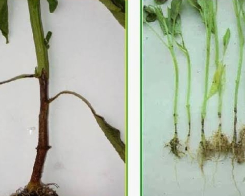 ✓ Daha ileri dönemlerde bitkilerin kök boğazında önceleri koyu yeşil zamanla kahverengi siyaha dönüşen bir renk değişimi meydana gelir.