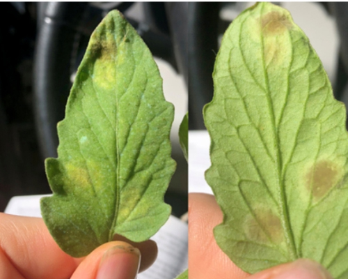 ✓ Domates yaprakları üzerinde önce sarı renkli lekeler oluşur.