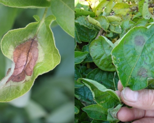 ✓ İlk belirtiler yaprak ve gövdede üstten bakıldığında soluk yeşil renkte büyük, daha sonra esmerleşen sınırları belirsiz lekelerdir.