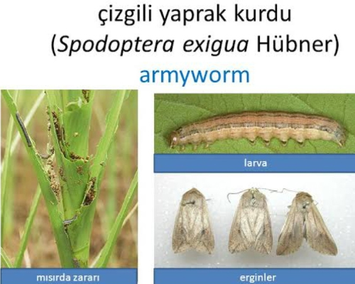 ✓ Daha ileriki larva dönemlerinde ise yaprağın tamamını yiyip bitirirler. Bitkideki asıl zararını, 2-3 ve 4-6 yapraklı dönemlerinde yapmaktadır.