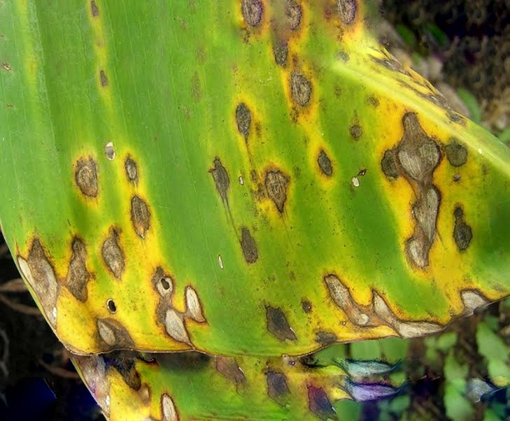 Belirtileri: Hastalık etmeninin başlangıç belirtileri 3. ya da 4. yaprakları üzerinde ilk olarak görülür, ve belirtiler yaprak damarlarına paralel 1-2 mm uzunluğunda linear sarı ile kahverengi lezyonlar şeklindedir. Bu lezyonların bazıları gelişmeye devam eder, renk olarak siyah ya da koyu kahverngiye döner, byüklüğü artari merkezi gri renklidir ve lezyonun etrafı klorotik bir hale ile kuşatılmaktadır. Lezyonlar genellikle birleşir ve daha geniş nekrotik alanlar yaprak üzerinde görülür. Ölü yapraklar yalancı gövdeden ayrılmaz. İnfekteli ağaçlarda meyveler küçük ve erken olgunlaşmıştır.