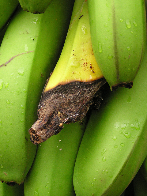 Meyve hevenkinin bir eli üzerindeki bir ya da daha fazla muz meyvesi hastalıktan etkilenebilir. Bu uç çürüklüğü lokalize bir renk kararması ve meyve uçunun kararması olarak başlar. Uç lezyonlar genişler ve meyvenin dış tarafında gri renkli bir tozlu spor görünümü oluşur. Meyve uçunun iç kısmında da, meyve eti kurur ve tüm meyve mumyalaşıncaya kadar ipliksi yapı oluşur.