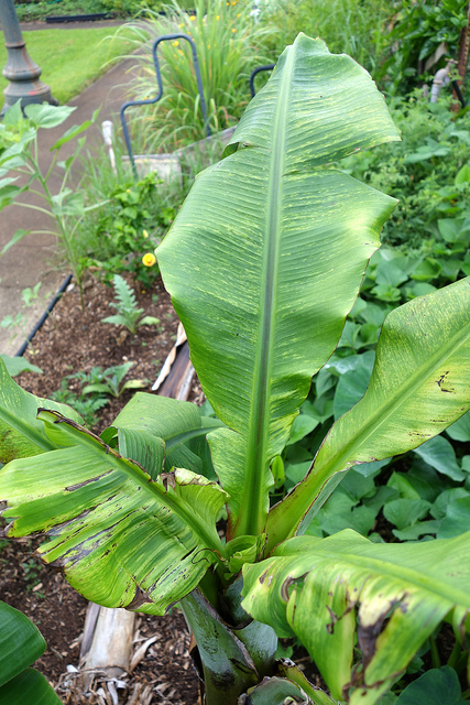 Viral hastalık etmeninin belirtisi kültivarlara göre farklılık gösterir. Hastalığın ileri durumlarında infekteli bitkiler dar ve dik yapraklı bir rozet görünümü şeklindedir, ve ismini de bu simptomlardan almaktadır. Koyu yeşil çizgiler damarlar ve yaprak saplarının üzerinde bulunur ve yalancı gövdeye doğru uzamaktadır. en belirgin bir belirtisi kısa koyu yeşil lekelerin varlığıdır ve küçük yaprak damarları boyunca bunlar yerleşmiştir. Bu durum özellikle yapraklara arka taraftan bakıldığında daha belirgin olarak görülür. Erken devrede etkilenen bitkiler bodurdur ve meyve üretmez.