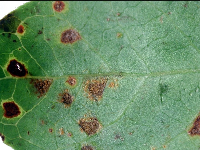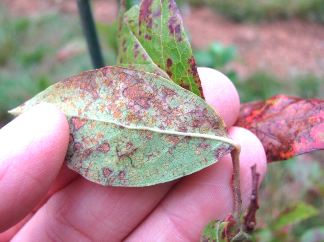 Yaz sonunda ortaya çıkar. Yaprakların üst yüzeyinde kahverengi lekeler. Yaprakların alt tarafında pudramsı turuncu-sarı püstüller. Erken yaprak dökümüne neden olabilir.