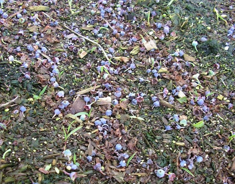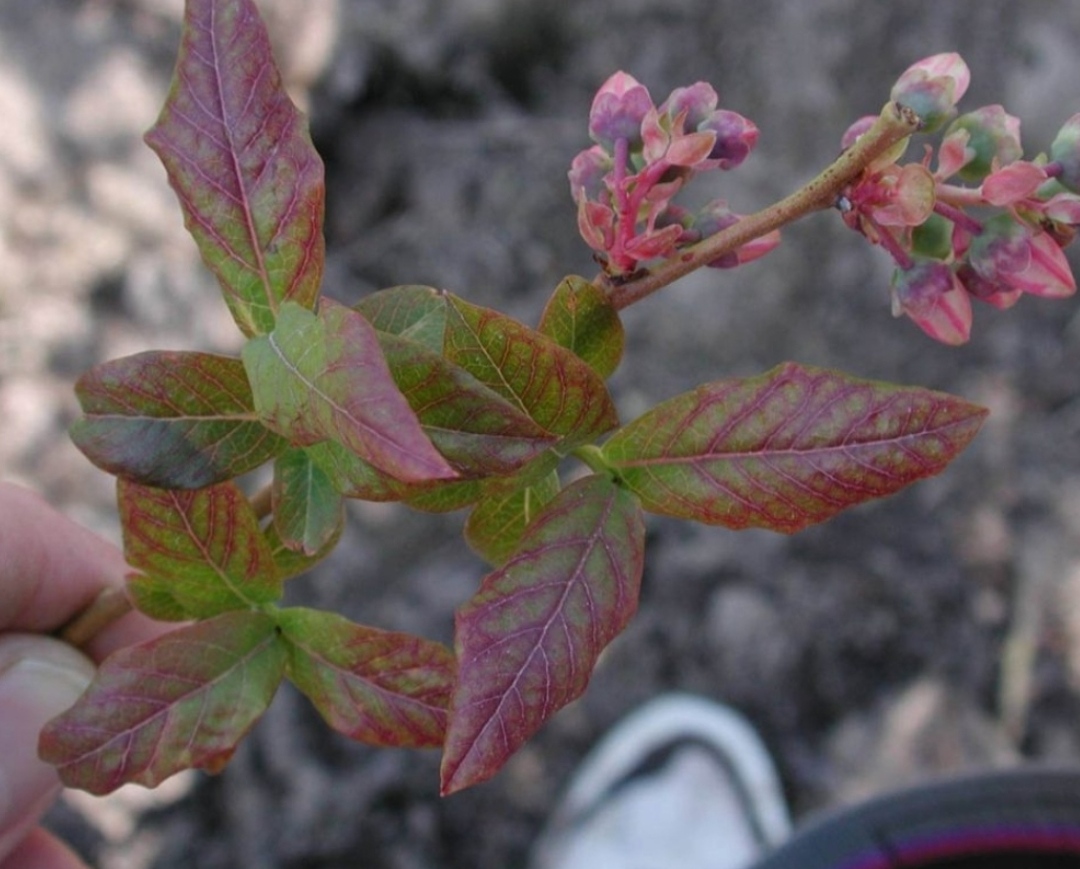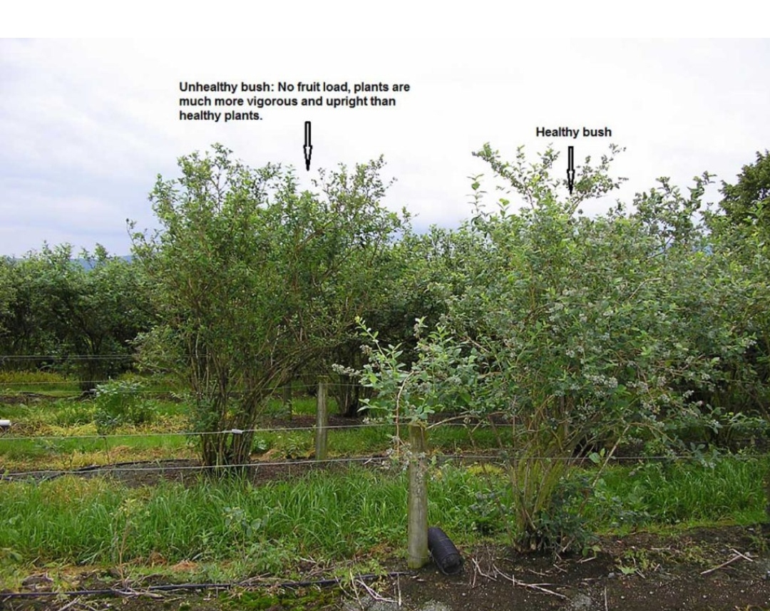 Çiçeklenme sırasında çiçekler ve yapraklarda kırmızı çizgiler olur. Meyveler gelişmeye başlar, 3-5 mm boyuta ulaşır ve daha sonra erken maviye döner ve düşer. Enfekteli çalılar, meyveleri olmadığı için komşu çalılardan daha uzundur. Belirtiler yalnızca Bluecrop`ta not edilmiştir. Bu hastalığın nedensel ajanı iyi anlaşılmamıştır.