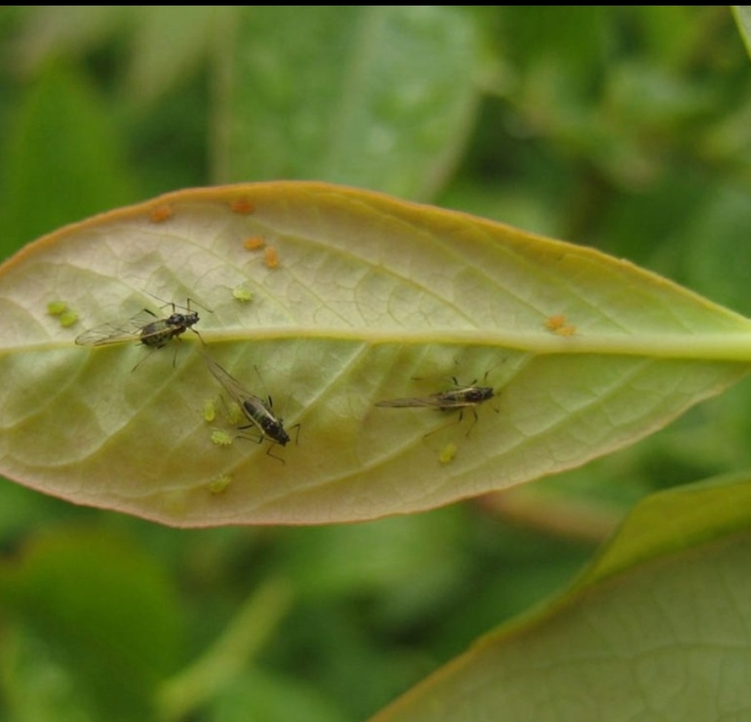 Böcek: Periler ve kanatsız yetişkinler küçük, 1-2 mm uzunluğunda, sarı, yeşil, turuncu veya pembedir. Kanatlı yaprak bitleri genellikle siyah ve 2-3 mm uzunluğundadır. Yaprak bitleri, Mart`tan Eylül`e kadar yaprakların alt kısmında ve yeni sürgün uçlarında bulunur. Kanatlı yaprak bitlerinin ilk nesli Mayıs ayı başlarında ortaya çıkar. Yaprak biti popülasyonları en yüksek Haziran ve Temmuz aylarındadır. Yaban mersini bitkilerinde yumurta olarak kışlarlar.