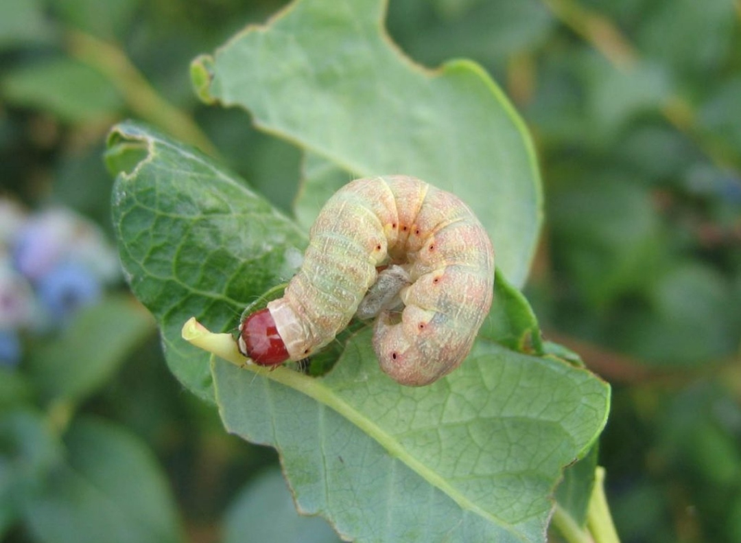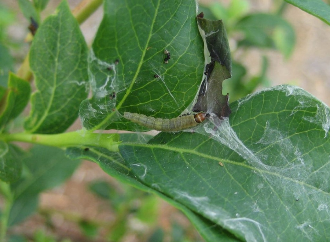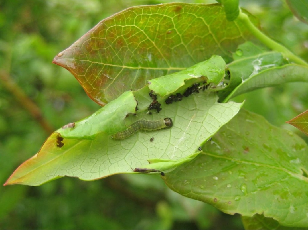 Böcek: Soluk yeşil başlı, vücutları boyunca uzanan iki soluk çizgi ile 18 mm uzunluğa kadar soluk yeşil tırtıllar. Güveler sonbaharın sonlarında ve kışın uçar ve yaban mersini bitkilerinin üzerine yumurta bırakır. Mart ayında larvalar yumurtadan çıkar ve Mayıs ayı sonuna kadar tomurcuklar ve çiçek kümeleri içinde beslenmeye başlar. Haziran ayında pupa yapmak için toprağa düşerler ve Ekim ayından sonra güve çıkışına kadar burada kalırlar. Yılda bir nesil vardır.
